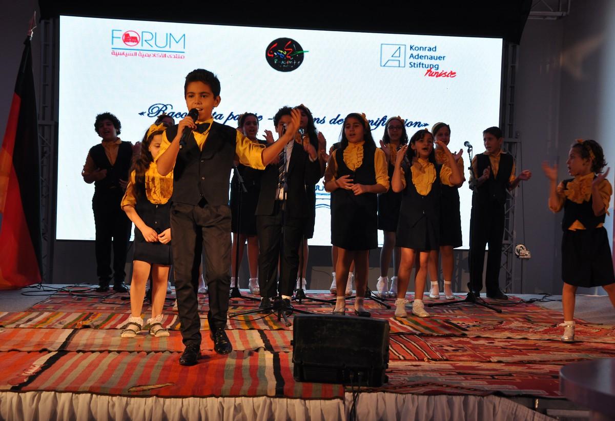 Im Rahmen ihres Aufenthaltes luden die Konrad-Adenauer-Stiftung und das Forum der Politischen Akademie (FOAP) zur Zeremonie „Erzähle von Deinem Land – 25 Jahre Wiedervereinigung ein“, an der zahlreiche Partner und Freunde der Institutionen teilnahmen. In ihrer Rede zog die Ministerpräsidentin dabei auch Parallelen zwischen den Ereignissen, die zur Deutschen Einheit sowie zur Revolution in Tunesien geführt hätten. In beiden Fällen seien zentrales Element und Antriebsfeder die Würde des Menschen gewesen. Auch mit Blick auf die aktuellen Ereignisse in Europa und Deutschland erinnerte sie daran, dass Politik eben diesen wichtigsten Satz des Grundgesetzes stets als zu gestaltendes Leitmotiv in Erinnerung haben muss.