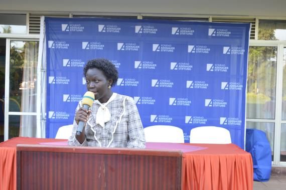 After welcoming remarks and a brief project overview by KAS Programme Coordinator Ben Mukhone, one of the local partner representatives, namely Ms. Claudia APIO from Lira NGO forum, highlighted the great need to work with the district Administrative wings as a best practice to ensuring coordination among CSOs and other partners in implementing projects that affect the communities. The project also comes at time that different CSOs are leveraging their strength to ensure a more accountable service delivery within the communities in which they operate and to also strengthen their roles as CSOs. She acknowledged the need for capacity building for CSOs to performance their oversight roles better. She also emphasized the need to get continuous support from the district right from the project start to the end.