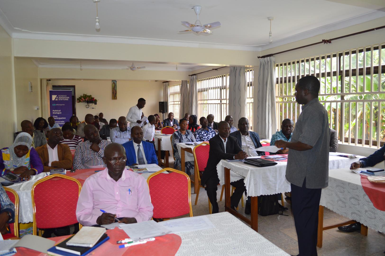 Seit 2016, als Uganda eine weitere Wahl durchlief, hat das Land viele neue Führungskräfte hinzugewonnen. In Anbetracht der bisherigen Wahlstatistiken brachte die Wahl 2016 eine beträchtliche Anzahl neuer Mitglieder in verschiedene Führungspositionen und damit viele Führungskräfte, die diese Ämter zum ersten Mal übernahmen. Seit der Einführung des Mehrparteiensystems 2005 deckt die Regierung unterschiedliche politische Ansichten und Meinungen ab. Dies ging auch mit vielen Herausforderungen einher. Führungskräfte verschiedener Parteien sind oft nicht in der Lage, effektiv zusammenzuarbeiten, um eine Politikgestaltung zu garantieren, die an den Bedürfnissen der Bürger ausgerichtet ist. Um diese Herausforderung anzugehen, organisierten KAS und DNG Trainings für gewählte und ernannte Distriktführer, um den politischen Pluralismus zu stärken, Toleranz zu fördern und die Teilnehmer zu ermutigen, harmonisch an der Erbringung von Dienstleistungen für die Wähler zu arbeiten.