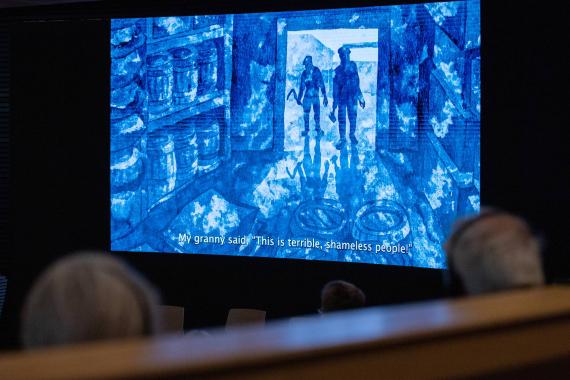 Die Teilnehmerinnen und das Publikum diskutierten über die historische und rechtliche Bewertung der russischen Verbrechen sowie über die Rolle der internationalen Gemeinschaft und insbesondere Deutschlands bei der Bewältigung der Kriegsfolgen und der Strafverfolgung der Täter. Es wurde über den Film, den Holocaust – die „Tragödie innerhalb der Tragödie“, so Marieluise Beck – und Deutschlands besondere Verantwortung gegenüber der Ukraine heute gesprochen.