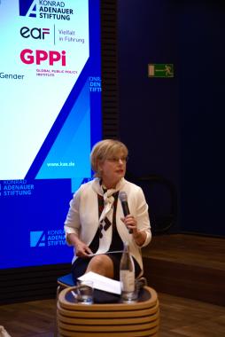 Eröffnet wurde die Diskussion von der Moderatorin der Veranstaltung, Dr. Helga Lukoshat, Vorstandsvorsitzende der EAF Berlin, mit einem Überblick über Genderfragen während des Krieges.