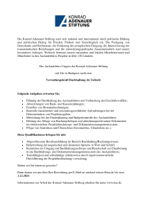 Das Auslandsbüro Ungarn der Konrad-Adenauer-Stiftung mit Sitz in Budapest sucht eine Verwaltungskraft Buchhaltung (in Teilzeit)