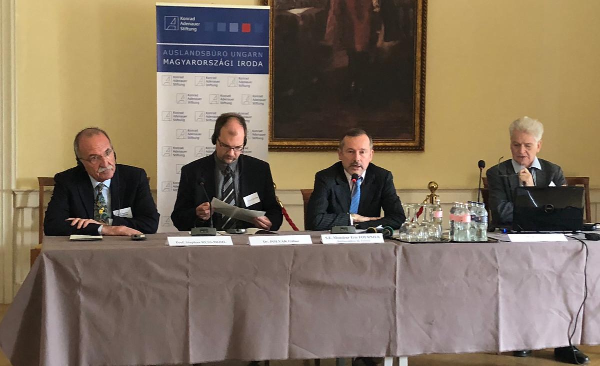 Schon in seiner Eröffnung auf Schloss Károlyi in Fehérvárcsurgó südwestlich von Budapest beklagte der französische Botschaft in Ungarn, Eric Fournier, die vielen Desinformationen im Internet, und dass große Medienkonzerne „Informationssilos“ seien, deren Produkte in „Filterblasen“ gemäß der eigenen ideologischen Vorlieben konsumiert würden. Bildhaft gesprochen: „Fischesser essen Fisch, Fleischesser essen Fleisch.“ Es stelle sich, so Fournier, die Frage der Verantwortung der Regierenden. So denke Frankreich über ein Gesetz gegen Fake News nach, die in den sozialen Netzwerken wie Facebook und Twitter produziert würden.