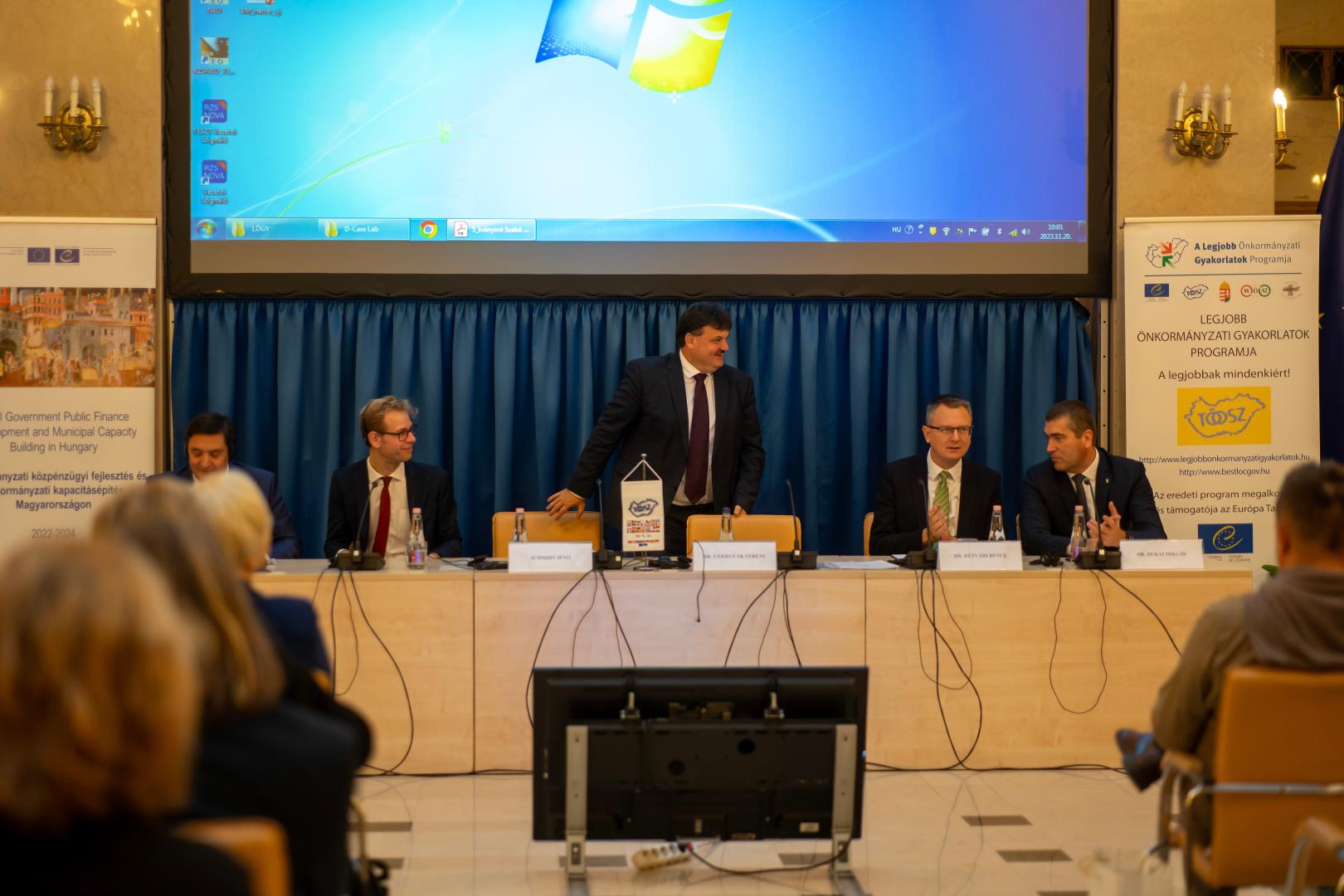 Unter Anderem hielt Herr Dr. Bence Rétvári, Parlamentarischer Staatssekretär des Innenministeriums eine Begrüßungsrede, in der er die Bedeutung der Rolle der Kommunalverwaltungen in einer demokratischen Gesellschaft und insbesondere ihre entscheidende Rolle bei der Bewältigung der Covid- und Energiekrise betonte. Er betonte, dass die staatlichen und lokalen Akteure in solch schwierigen Situationen zusammenarbeiten müssen.