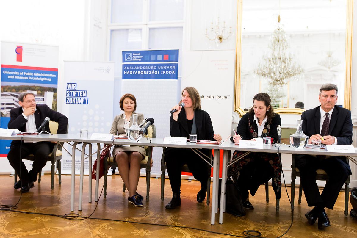 Die Moderation des Abends übernahm Daniela Musiol, frühere Abgeordnete des österreichischen Nationalrats. Zuerst sprach Péter Szegvári, der Vorsitzende des Budapester Transportzentrums BKK, über seine Erfahrungen mit ICT, eGovernance und Smart Cities. Beth Noveck, die Direktorin des „Governance Lab” der New York University, betonte, wie wichtig es für eGovernance sei, die Öffentlichkeit mit einzubeziehen. Die interessantesten Entwicklungen fänden genau dort statt, wo „die Bürger selbst aktiv an den Prozessen teilnehmen“. Andreas Kiefer, der Generalsekretär des Kongresses der Gemeinden und Regionen des Europarates, ging weiter auf den Einfluss von ICT auf Transparenz und Demokratie ein: er hob eVoting als eine der wichtigsten Entwicklungen in diesem Feld hervor. Dona Scola, Mitglied des UN Expertenkomitees für Öffentliche Verwaltung, gab einen Einblick in die Entwicklung von ICT in Moldawien.
