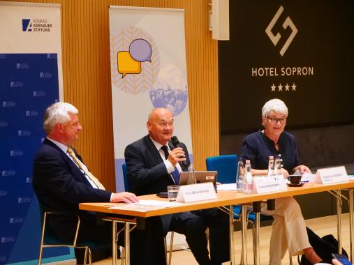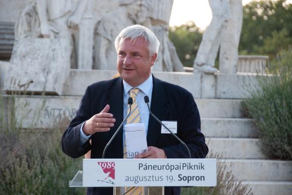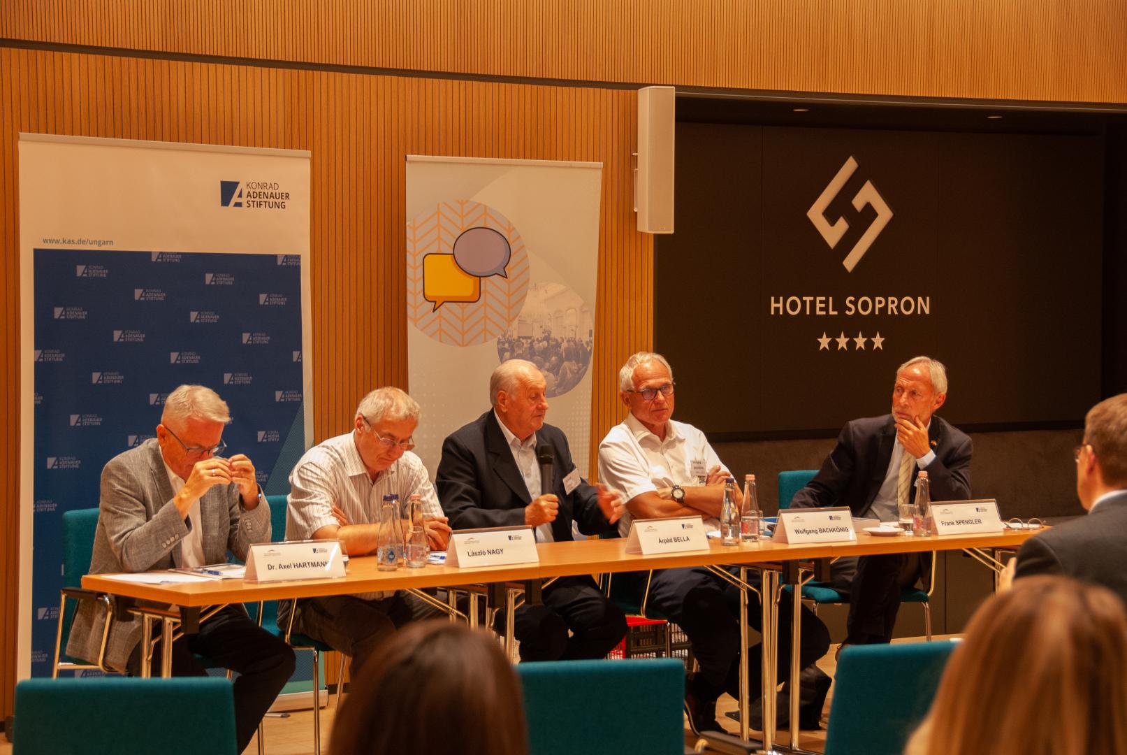 In seiner Öffnungsansprache am ersten Tag der Veranstaltung erinnerte Michael Winzer, Leiter des Auslandsbüros der Konrad-Adenauer-Stiftung in Ungarn daran, dass in Sopron Weltgeschichte mit der Grenzöffnug geschrieben wurde. Mit dem Slogan ,,baue ab und nimm mit“ und mit dem Zitat Helmut Kohls: ,,Es sei Ungarn wo der erste Stein aus der Mauer geschlagen wurde‘‘ aus dem Jahr 1990, unterstrich Michael Winzer, dass der Grundstein für die Wiedervereinigung der Bundesrepublik Deutschland in Sopron mit dem Grenzübergang von über 600 Ostdeutsche gen Westen gelegt wurde. Dies war ein Meilenstein in der deutsch-ungarischen Freundschaft.