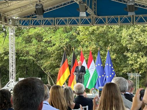 Anschließend hielt Frank-Walter Steinmeier, Präsident der Bundesrepublik Deutschland, seine Festrede. Der Bundespräsident sagte, dass die deutsche Einheit  in Ungarn ihren ersten wichtigen Schritt nach vorne getan hat. Er fügte hinzu: "Ungarn öffnete von hier aus ein Fenster, das zur gesamten Welt hin aufging. Das werden wir in Deutschland nie vergessen. Und wir bleiben den Ungarn auf immer dankbar dafür". Er brachte seine Überzeugung zum Ausdruck: "Ungarn und Deutsche, wir brauchen einander, und wir beide brauchen die Europäische Union! Gemeinsam haben wir sie errichtet, und gemeinsam wollen wir sie in Zukunft gestalten – als Partner und als Freunde, im Geiste Soprons: mutig und getragen von Solidarität, Freiheit und Einheit."