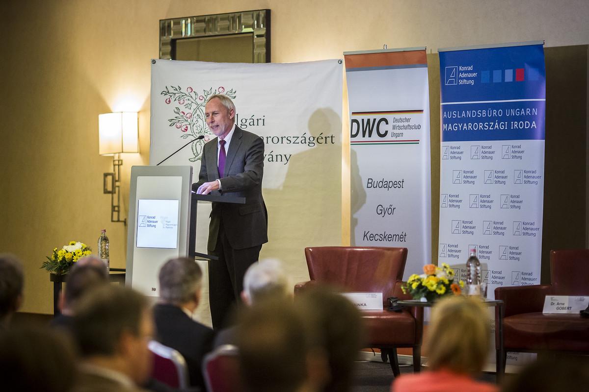In seiner Eröffnung ging Frank Spengler, Leiter des KAS-Büros in Ungarn, auf die Verzahnung der wirtschaftlichen Interessen von Deutschland und Ungarn ein, die in „bewegten Zeiten“ eine solide Grundlage für belastbare bilaterale Beziehungen bilden würden. Hierfür trugen deutsche Unternehmen mit ihren Produktionsstätten in Ungarn eine Schlüsselrolle. Der Abend solle einen Beitrag dazu leisten, Lösungsansätze für gemeinsame (energie-)wirtschaftliche Strategien zu finden.