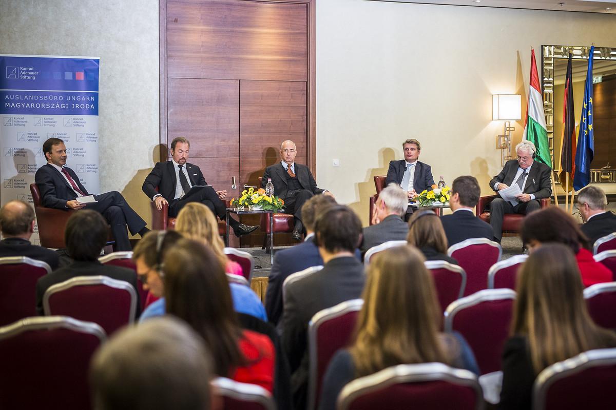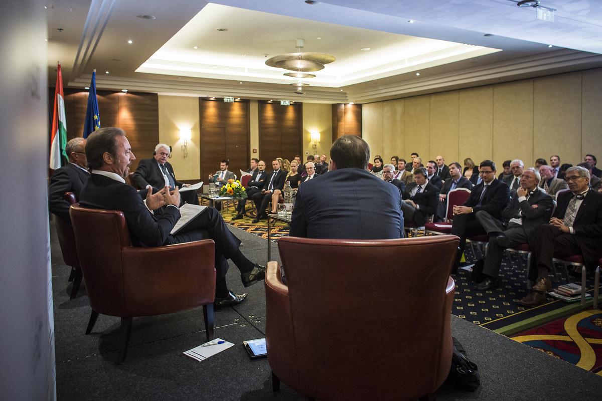 Als Teilnehmer der Diskussion konnten Thomas Bareiß, Beauftragter für Energiepolitik der CDU/CSU-Bundestagsfraktion, Dr. Arne Gobert, Vorstandsvorsitzender des Deutschen Wirtschaftsclubs, Dale A. Martin, Vorstandvorsitzender der Siemens Zrt. und Präsident der DUIHK, sowie János Fónagy, Parlamentarischer Staatssekretär, Nationales Entwicklungsministerium, gewonnen werden. Moderiert wurde der Gedankenaustausch, an dem rund 130 Interessierte teilnahmen, von dem Chefredakteur der Budapester Zeitung Jan Mainka.