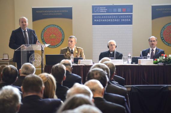 Prof. Dr. András Patyi, Rektor der Universität für den Öffentlichen Dienst, bedankte sich in seiner Eröffnungsrede sich bei den Partnern für die gute Zusammenarbeit und er hob die besondere Relevanz des Gedankenaustausches zwischen staatlichen Akteuren und den Vertretern der religiösen Gemeinschaften hervor. Der Universität komme in diesem Kontext die Aufgabe zu, Entscheidungsträger auszubilden, die sich in Zukunft mit der Migrationsproblematik auseinandersetzen würden.