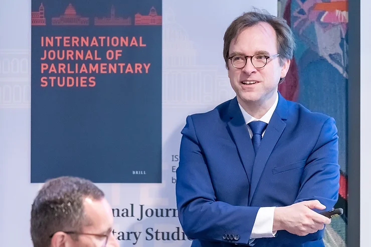 Professor Doktor. Jörn von Lucke, Vertreter der Zeppelin Universität in Deutschland, hielt einen Vortrag über den parlamentarischen Einsatz künstlicher Intelligenz. – Foto: András Adorján