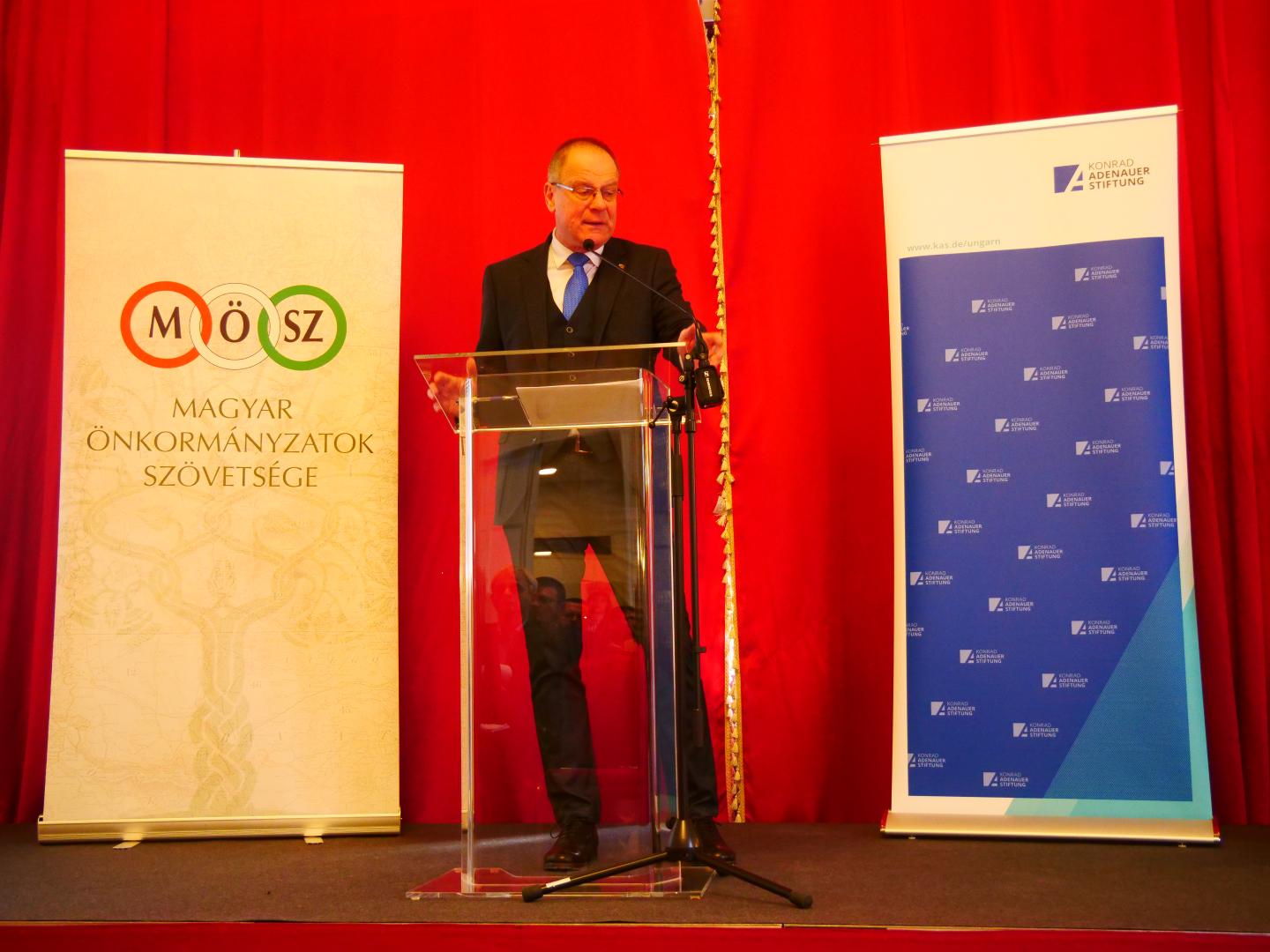 Am 3. Februar 2025 organisierte der Verband der ungarischen Kommunalverwaltungen mit Unterstützung der Konrad-Adeanuer-Stiftung eine groß angelegte Konferenz in Gödöllő. Eröffnet wurde die Konferenz von György Gémesi, Präsident des MÖSZ, und Michael Winzer, Leiter des ungarischen Büros der KAS. In seiner Eröffnungsrede hob Herr Winzer die jahrzehntelange Zusammenarbeit zwischen den beiden Organisationen und die Bedeutung konservativer Werte und der Demokratie hervor.