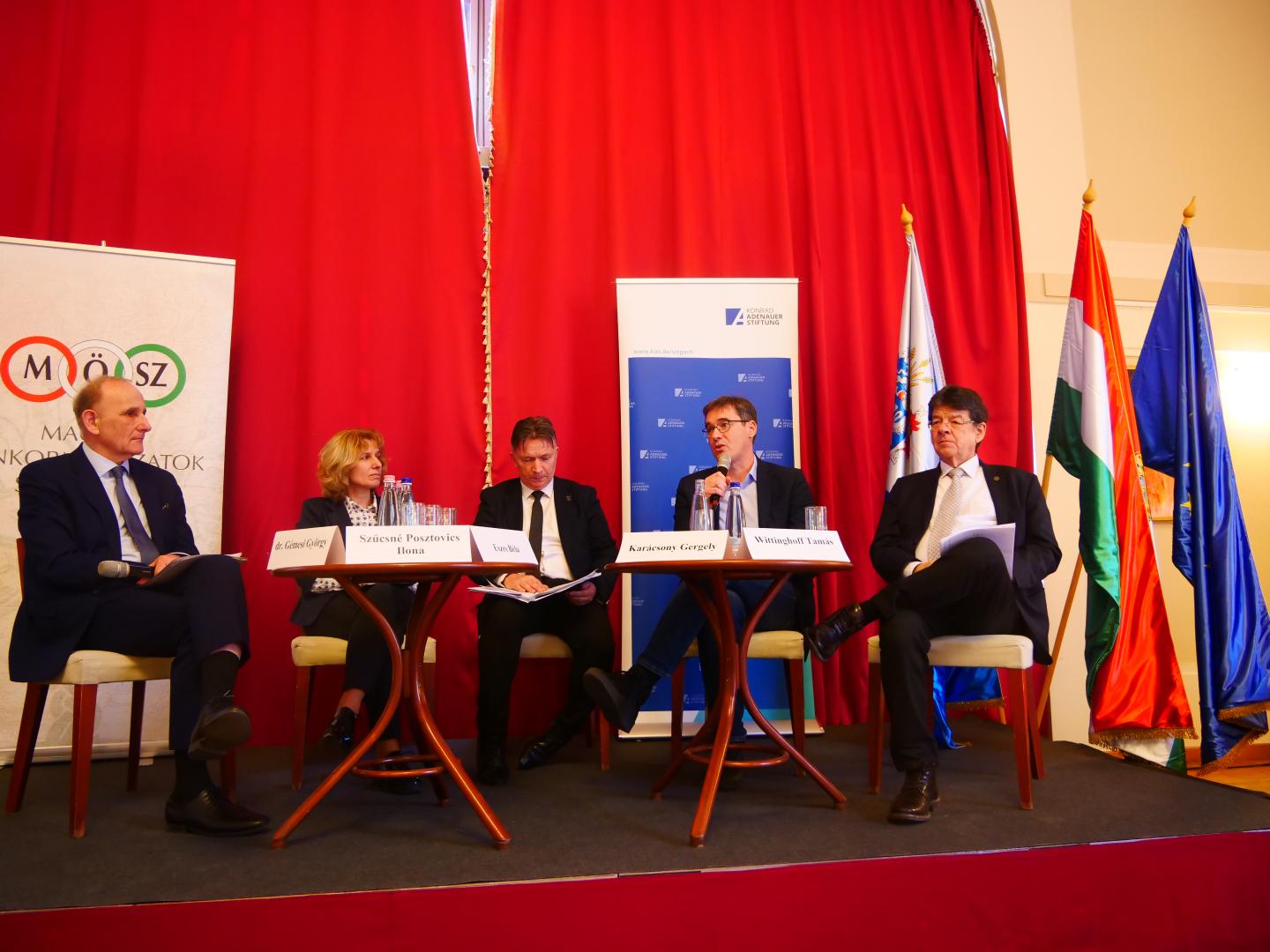 Der Verband der ungarischen Kommunalverwaltungen (MÖSZ) organisierte mit Unterstützung der Konrad-Adenauer-Stiftung in Gödöllő ein Treffen für Bürgermeister von Gemeinden über die wirtschaftliche Lage und die Perspektiven der Kommunalverwaltungen in diesem Jahr. An der Konferenz nahmen Dr. Tibor Navracsics, Minister für regionale Entwicklung, und Gergely Karácsony, Bürgermeister von Budapest, teil. Eröffnet wurde die Konferenz von György Gémesi, Präsident des MÖSZ und Bürgermeister von Gödöllő, und Michael Winzer, Leiter des Auslandsbüros der Konrad-Adenauer-Stiftung in Ungarn.