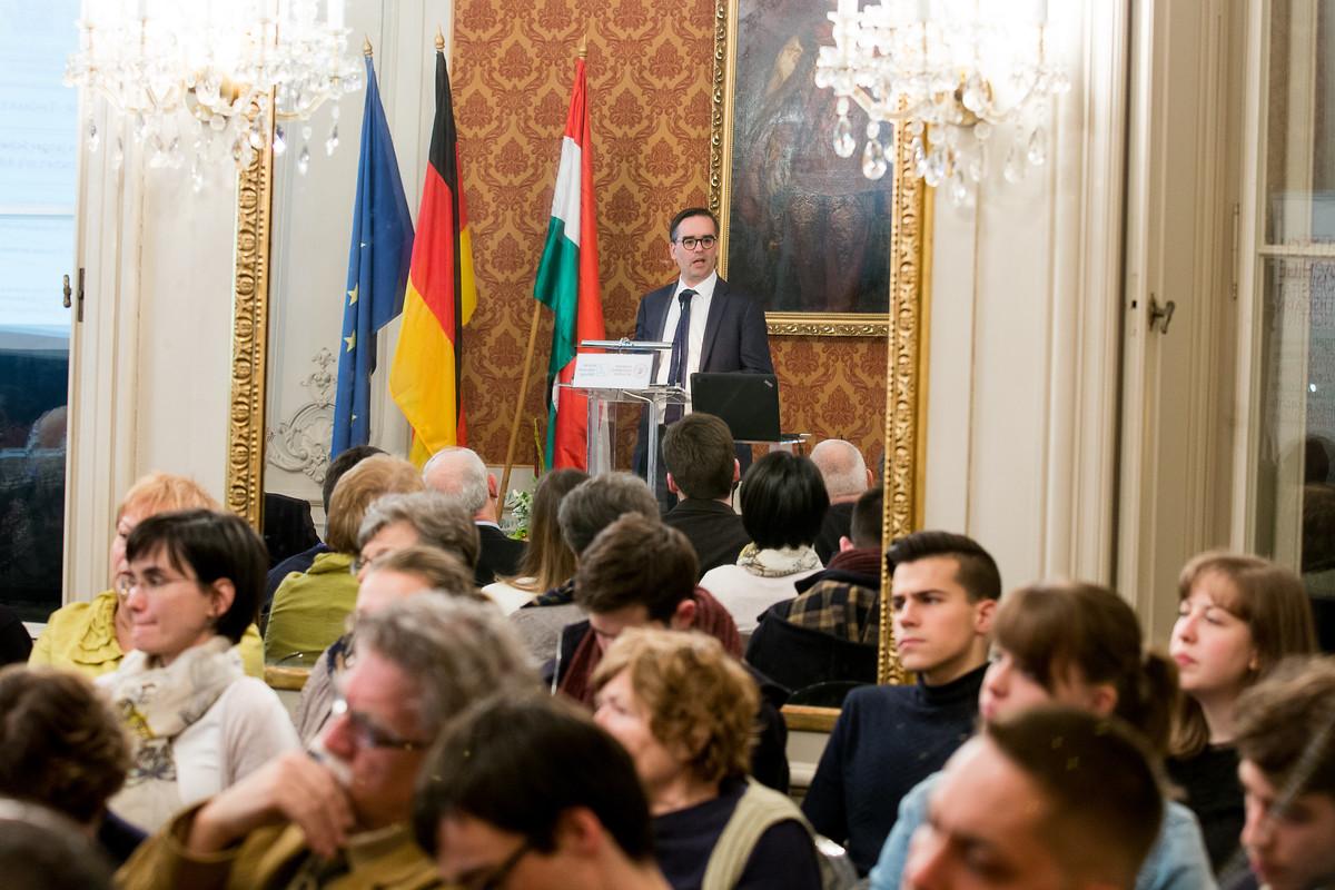 Eröffnet wurde die Veranstaltung von Prof. Dr. András Masát, Rektor der Andrássy Universität, sowie Frank Spengler, Leiter des Auslandbüros Ungarn der Konrad-Adenauer-Stiftung. Prof. Dr. Hendrik Hansen, Prorektor der Andrássy Universität, erklärte einleitend, dass der „Nationalsozialismus noch alle Debatten in Deutschland prägt, auch die über die Vergangenheit“.