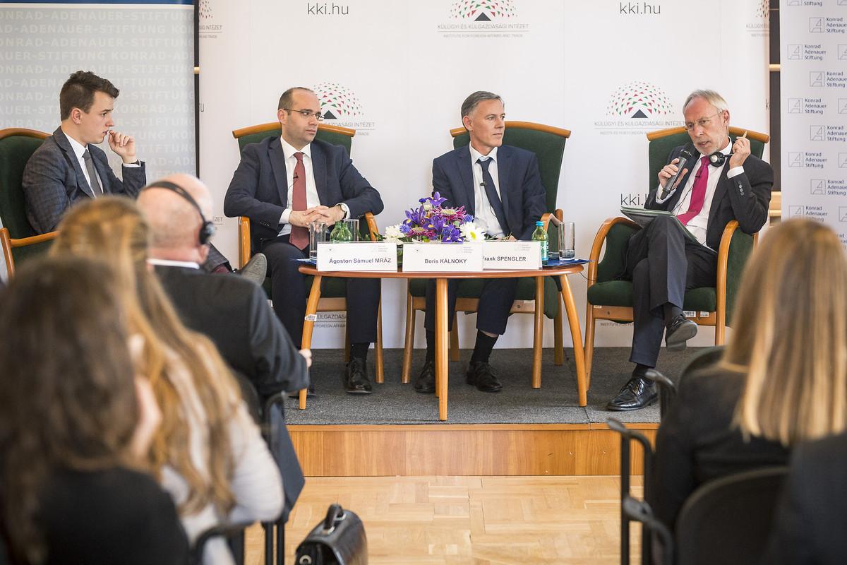 Nach der Begrüßung durch Márton Schőberl, Direktor des Instituts für Auswärtige Angelegenheiten und Außenwirtschaft, und Frank Spengler, Leiter des Auslandsbüros Ungarn der Konrad-Adenauer-Stiftung, ging Dr. Csaba Hende, Vizepräsident der Ungarischen Nationalversammlung, in seiner Eröffnungsrede auf die Interdependenz der Beziehungen zwischen beiden Ländern ein. Die politische und wirtschaftliche Stabilität in Deutschland habe eine große Bedeutung für die gesellschaftliche Entwicklung Ungarns.