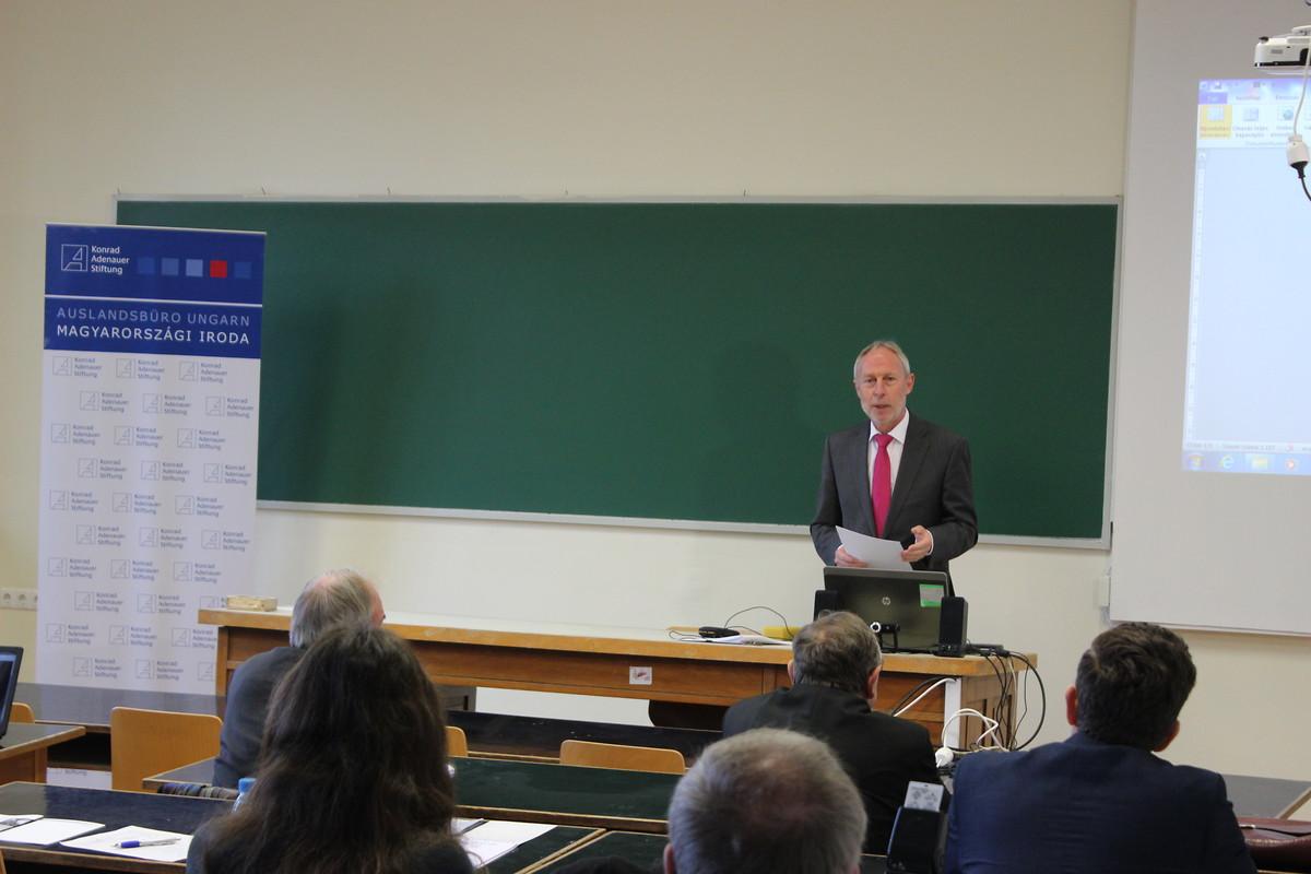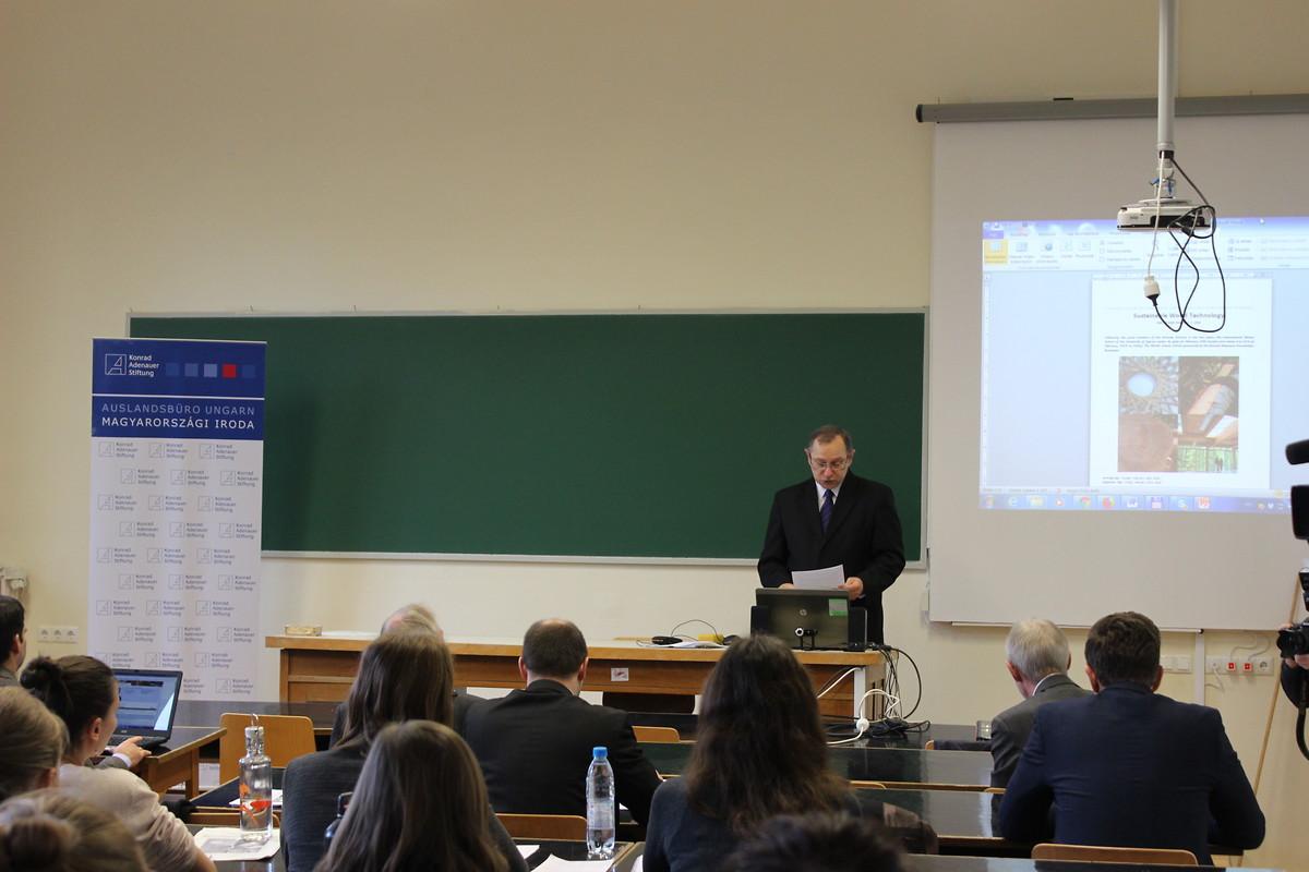 Die Winterschule wurde von Prof. Dr. András Náhlik, Rektor der Universität Sopron und Ciprián Farkas, Stadtrat der Stadt Sopron, zusammen mit Frank Spengler, Leiter des Auslandsbüros Ungarn der Konrad-Adenauer-Stiftung, in Sopron eröffnet. Im Namen der Universität begrüßte Prof. Dr. Róbert Németh, der stellvertretende Rektor der Universität Sopron, die Gäste.