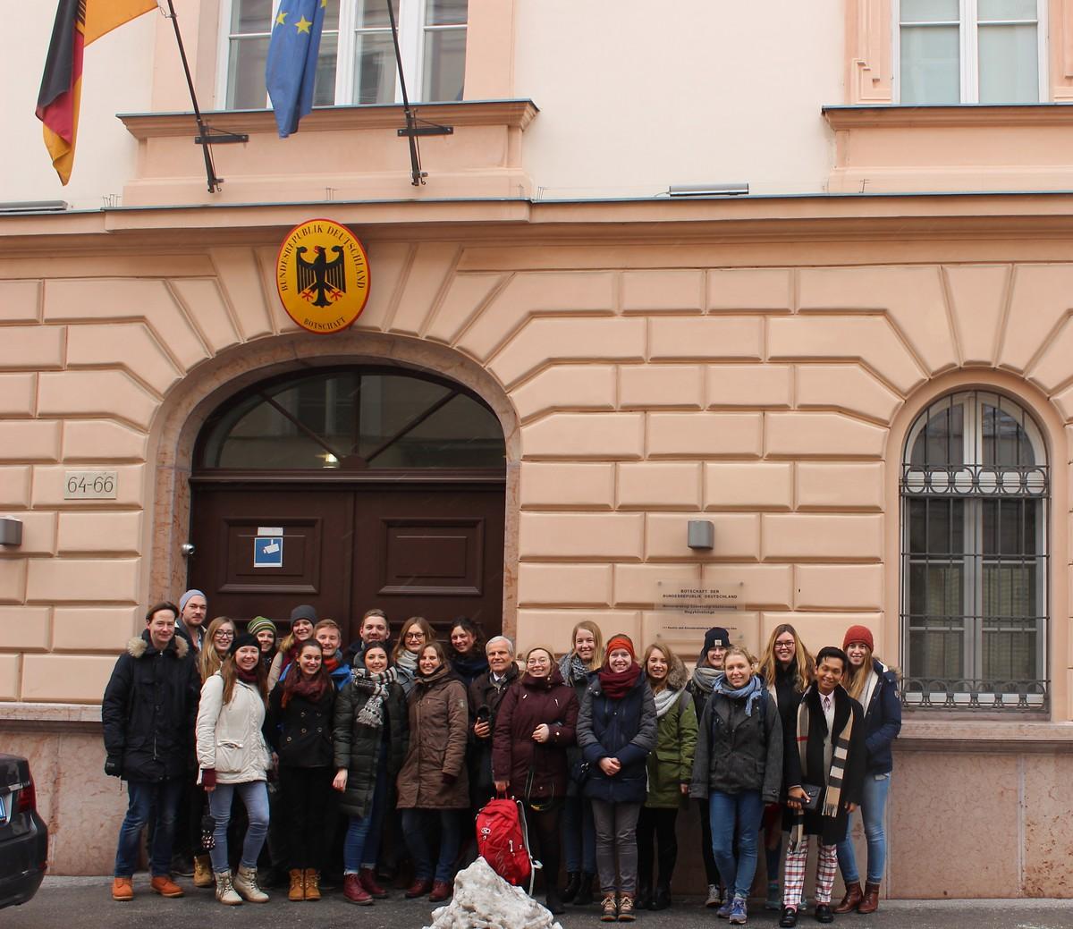 Die Winterschule endete mit einer Präsentation über Geographische Informationssysteme (Prof. Dr. Barsi Àrpád, TU Budapest) in der Deutschen Botschaft in Budapest und einem anschließenden gemeinsamen Abendessen. Neben dem inhaltlichen Input standen auch das Networking und der transnationale Austausch zwischen den deutschen und ungarischen Studierenden sowie Professoren im Mittelpunkt.