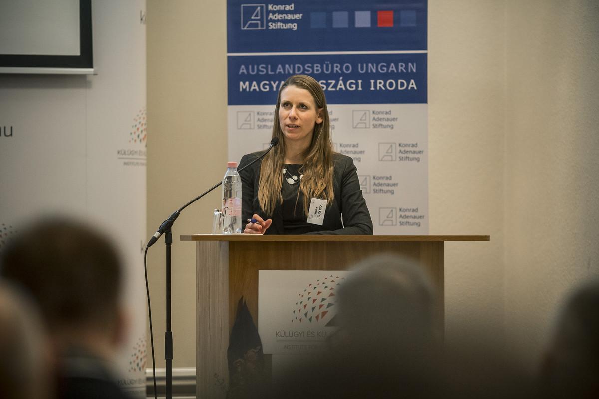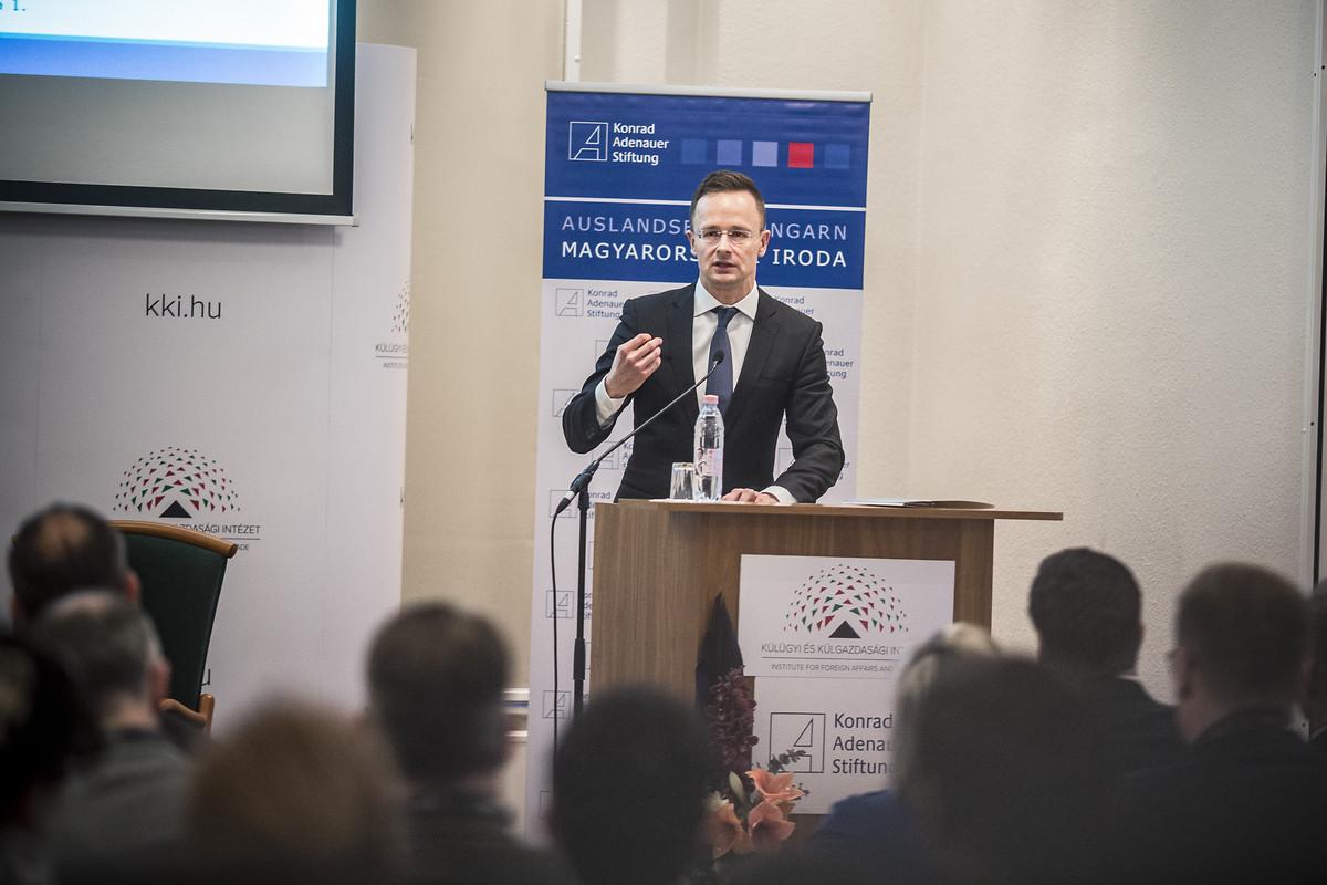Am frühen Abend wurde die Veranstaltung in den Räumen des Instituts für Auswärtige Angelegenheiten und Außenwirtschaft (KKI) fortgesetzt. Nach den Grußworten von Frank Spengler, Leiter des Auslandsbüros Ungarn der Konrad-Adenauer-Stiftung und seines Kollegen Márton Schőberl, Direktor des Instituts für Auswärtige Angelegenheiten und Außenwirtschaft, eröffnete Péter Szijjártó, Minister für Außenwirtschaft und Auswärtige Angelegenheiten, die Veranstaltung. Szijjártó wies darauf hin, dass die EU nun mit einer der wichtigsten Herausforderungen konfrontiert sei. Dennoch dürfe man diese emotionale Debatte nicht als solche entscheiden, sondern müsse zu einem rationalen Ergebnis kommen. Die Herausforderungen, denen sich die Gemeinschaft derzeit konfrontiert sehe, könne nur gemeinsam begegnet werden. Zudem ermahnte Szijjártó die Gäste zu bedenken, dass der Westbalkan bereits in der EU sei, denn er sei umringt von Mitgliedsstaaten. „Wir Europäer denken, dass die Erweiterung der Schlüssel zur Lösung der Probleme ist, denn je mehr wir sind, desto stärker sind wir.“