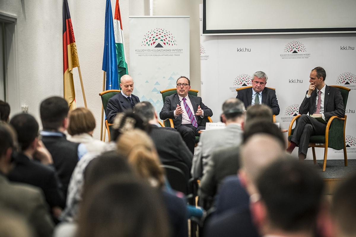 Im Folgenden diskutierten Zsolt Németh, Vorsitzender des Ausschusses für Auswärtige Angelegenheiten der Ungarischen Nationalversammlung, Knut Abraham, Referatsleiter für Bilaterale Beziehungen im Bundeskanzleramt sowie Clive Rumbold, stellvertretender Leiter der Abteilung für den westlichen Balkan des Europäischen Auswärtigen Diensts, über den Fortschrittsbericht der EU-Kommission und welchen Beitrag einzelne Länder zum Gelingen beitragen könnten. Moderiert wurde die Podiumsdiskussion von Márton Ugrósdy, stellv. Direktor für Strategische Angelegenheiten des Instituts für Auswärtige Angelegenheiten und Außenwirtschaft, Ungarn.