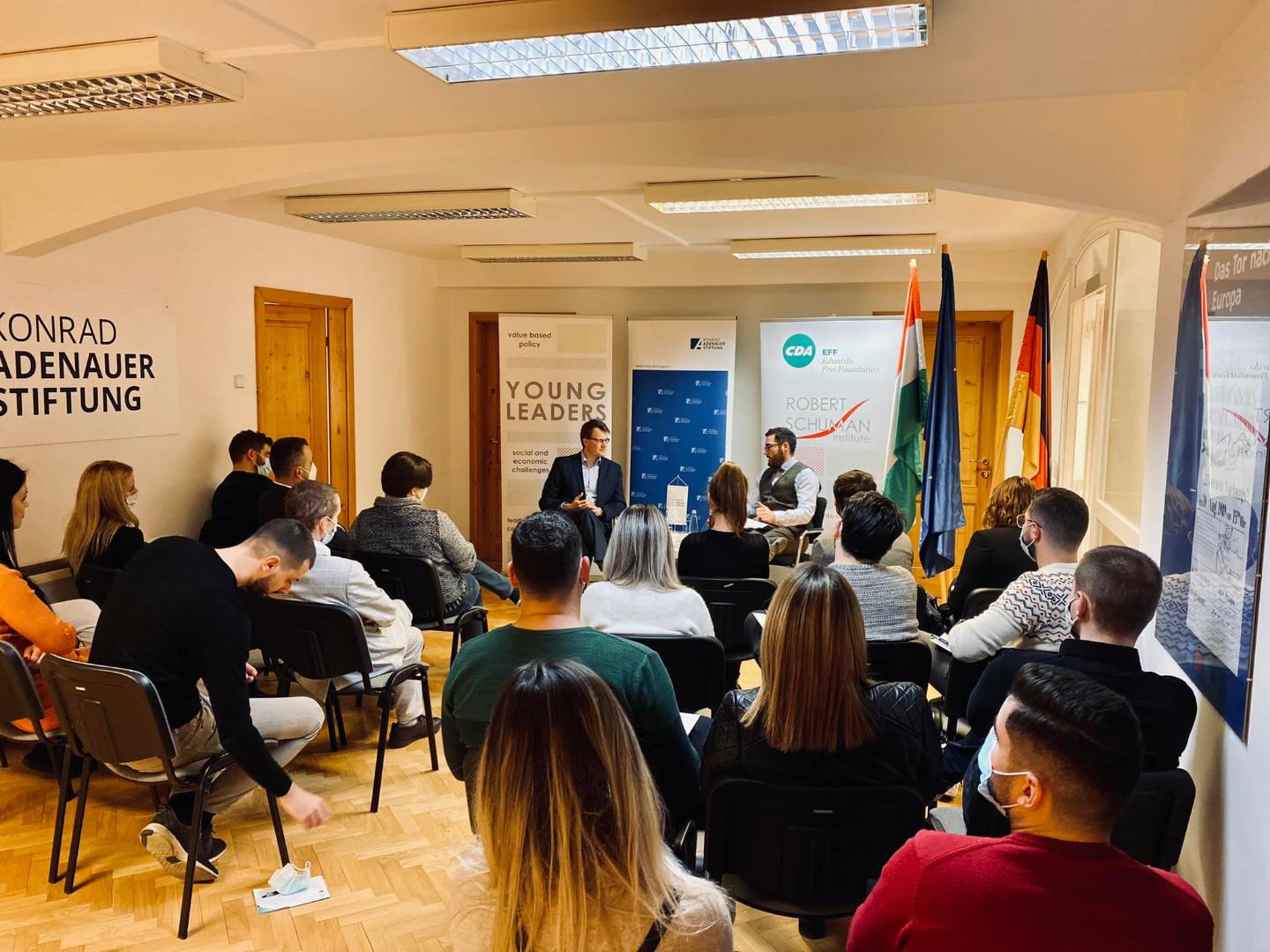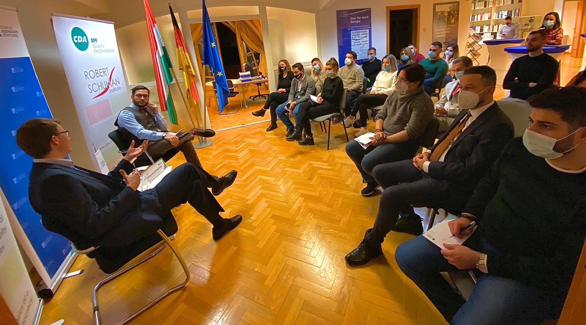 The seminar was the second part in the 2021-22 edition of the Robert Schuman Institute’s “Young Leaders” seminar, the 28th such held. As in previous years, the week provided the young politicians present with a valuable network of contacts and a wealth of technical and practice-oriented information necessary for promoting economic development rooted in the common values shared by the Konrad-Adenauer-Stiftung and the EPP’s partner parties.