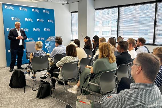 Die Abschlussklasse der RTL-Journalistenschule war in Washington, um mehr über Politik und Medien in den USA zu erfahren. Bei der Konrad-Adenauer-Stiftung informierten sie sich über die Stiftungsarbeit und trafen auf deutsche Amerika-Korrespondenten. In Gesprächen in kleiner Runde tauschten sie sich zur Arbeit hier in den USA aus, insbesondere zur Berichterstattung im Superwahljahr 2024.