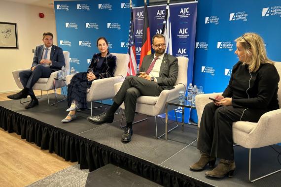 Dr. Mark Speich, Generalsekretär der Konrad-Adenauer-Stiftung, erinnerte in seiner Eröffnungsrede daran, dass der Beginn des Dialogs vor 60 Jahren nicht auf einer öffentlichen oder kulturellen Bereitschaft beruhte, sondern auf wenigen mutigen Personen, die eine Tür öffneten, von der kaum jemand geglaubt habe, sie werde jemals wieder geöffnet: „Politisch gesehen legten Vereinbarungen den Grundstein, aber letztendlich waren es der menschliche Austausch, die kulturelle Interaktion und die Zusammenarbeit, die Herzen und Köpfe der Menschen veränderten.“ Jason Isaacson, Chief Policy and Political Affairs Officer des AJC, betonte die Notwendigkeit, die Beziehung aus verschiedenen Blickwinkeln zu betrachten: „Man ist dazu verpflichtet – Fragen zu stellen, Antworten zu suchen, Verständnis zu suchen.“