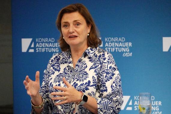 Eröffnet wurde der Abend von Jim Dykstra, Präsident von Dykstra Consulting und ehemaliger stellvertretender Verteidigungsminister für legislative Angelegenheiten. Er bot eine amerikanische Perspektive auf die sich entwickelnde globale Ordnung und beschrieb den moralischen Rahmen, der US-Strategien beeinflusst. Karien van Gennip, Mitglied des Aufsichtsrats von ASML und ehemalige stellvertretende Ministerpräsidentin der Niederlande, folgte mit Überlegungen, welche Rolle Europa spielen kann, um demokratische Werte in einem Moment geopolitischer Unsicherheit zu wahren. Ausgehend von ihren Erfahrungen in Regierung und Privatwirtschaft unterstrich sie, wie bedeutend die transatlantische Solidarität ist, um globale Herausforderungen zu bewältigen, wie technologische Erfindungen, Klimawandel und die Verteidigung demokratischer Institutionen.