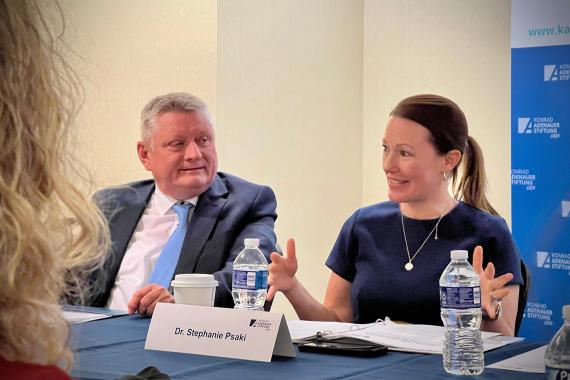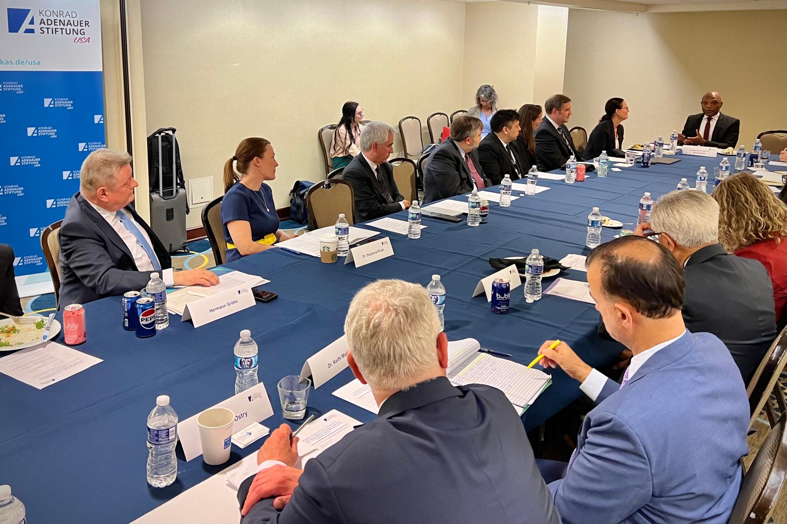 Einblicke zur politische Lage in den USA erhielt die Delegation darübe hinaus vom Präsidenten des American-German Institutes, Jeff Rathke, sowie von Peter Rashish, Leiter des Geoeconomics Program. Die Lage der Republikanischen Partei stand im Fokus der Gespräche mit Antonia Ferrier, Vizepräsidentin für Außenbeziehungen beim International Republican Institute (IRI) sowie Kodiak Hill-Davis, Vizepräsidentin für Regierungsangelegenheiten im Niskanen Center. Die Delegation sprach zudem mit Peter Rough, Direktor des Europazentrums im Hudson Institute.