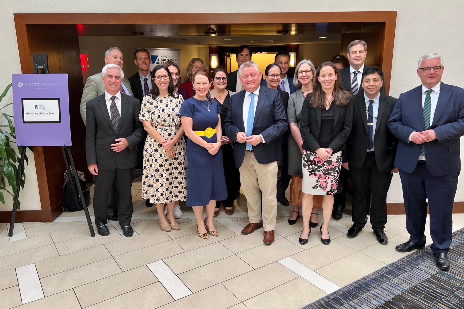 Das Dialogprogramm setzte den letztjährigen Besuch von Hermann Gröhe zum World Health Summit Regional Meeting in Washington fort. Im Zentrum stand der zweite „Global Health Luncheon“ des KAS USA-Büros – eine Diskussion wichtiger Entscheidungsträger in globalen Gesundheitsfragen. Impulsreferate hielten Dr. Stephanie Psaki, Koordinatorin für globale Gesundheitssicherheit im Weißen Haus, Ambassador Dr. John N. Nkengasong, Koordinator für globale AIDS-Bekämpfung im US-Außenministerium, Dr. Victor Dzau, Präsident der National Academy of Medicine, und Dr. Keith Martin, Leiter des Universitätskonsortiums für globale Gesundheit. Weitere Teilnehmer kamen vom US-Gesundheitsministerium und weiteren US-Behörden wie USAID und CDC, multilateralen Organisationen wie PAHO (Panamerikanische Gesundheitsorganisation) sowie Think Tanks, NGOs und Universitäten. Sie diskutierten über den fairen Zugang zum medizinischen Fortschritt, den Schutz des geistigen Eigentums sowie Erwartungen an die Weltgesundheitsversammlung in Genf. Hermann Gröhe bezeichnete die Veranstaltung als „Höhepunkt der Reise“.