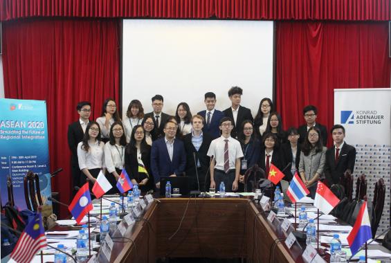 Einige ausgewählte Studierende bekamen die Möglichkeit, im von der Diplomatischen Akademie Vietnam (DAV) und KAS organisierten Simulationsspiel teilzunehmen. Indem sie in die Rollen von Delegierten der ASEAN-Mitgliedsstaaten schlüpften, konnten die Studierenden hierdurch ihre Verhandlungskompetenzen trainieren sowie Einblicke in die Herausforderungen erlangen, vor denen Diplomaten häufig stehen. Die diskutierten Themen bezogen sich auf hypothetische Szenarien zu Arbeitsmigration, maritimer Sicherheit und Flüchtlingsbewegungen.