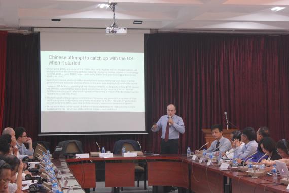 Am 13. August 2019 organisierte die Diplomatic Academy of Vietnam (DAV) in Zusammenarbeit mit der KAS die dreizehnte Konferenz der China Talk-Reihe. Diesmal sprach Dr. Vasilii Kashin vom Centre for Analysis of Strategies and Technologies in Moskau über die jüngsten Trends in der Entwicklung der chinesischen Verteidigungsinnovation und der industriellen Basis. Um diese zu verstehen, erläuterte Dr. Kashin zunächst die Geschichte der chinesischen Verteidigungsinnovation. Nachdem die militärische Modernisierung in den 1980er und 90er Jahren an Priorität verloren hatte, änderte der amerikanische Bombenanschlag auf die chinesische Botschaft in Belgrad 1999 die chinesische Wahrnehmung und Peking unternahm große Bemühungen das Militär zu modernisieren. Nachdem China sich auf begrenzte Technologieimporte aus den USA (bis 1989), Israel (bis Anfang der 2000er Jahre) und postsowjetischen Ländern (1989 bis heute) stützte, konnte es Ende der 2000er und 2010er Jahre eine Reihe von Durchbrüchen erzielen. Dazu gehören Radartechnik, Militärapplikationen und militärischer Schiffbau. Die wachsenden Spannungen mit den USA lassen China seit 2009 aktiv für die zukünftige Konfrontation planen. Dies führt zu einem Air Sea Battle-Konzept. Während sich die Spannungen mit den USA seit Mitte 2018 durch den Handelskrieg weiterhin verschlechtern, erholt sich die Verteidigungszusammenarbeit mit Russland. Diese jüngsten Trends werden höchstwahrscheinlich zu einer noch stärkeren chinesisch-russischen Integration führen, während Chinas Chancen, den Wettbewerb für Verteidigungsinnovationen mit den USA zu gewinnen, realistischer werden, sagte Dr. Kashin. Prof. Dr. Nguyen Hong Quan, ehemaliger stellvertretender Direktor des Instituts für Verteidigungsstrategie des Verteidigungsministeriums und Dr. Do Le Chi, Direktor des Ministeriums für öffentliche Sicherheit, Abteilung für Wissenschaft, Geschichte und strategische Studien, waren zwei Kommentatoren dieser Veranstaltung. Beide teilten wertvolle Beiträge zum Streben Pekings nach Verwirklichung seiner Macht und zu den Sicherheitsbedenken Vietnams - eines der am stärksten betroffenen Länder in der Region. Die Veranstaltung wurde von anderen bekannten Wissenschaftlern sowie von Interessenträgern von Forschungsinstituten, Botschaften und Regierungsbehörden mit großem Interesse besucht.