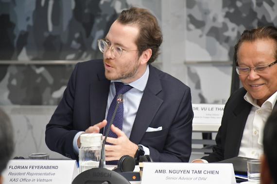 Nach einer herzlichen Begrüßung durch Dr. Nguyen Hung Son, Vizepräsident der DAV, und Florian Feyerabend, Resident Representative der KAS Vietnam, war alles vorbereitet, um in das Thema der Veranstaltung einzutauchen. Chinas Handeln ist stark von seinen historischen und kulturellen Gegebenheiten geprägt, die das Land zu dem gemacht haben, was es heute ist. Es ist nicht zu bestreiten, dass der Präsident Mao Zedong eine Schlüsselrolle bei der Gestaltung von Chinas Politik und dessen Sicht auf die Welt spielte. Einige dieser Tendenzen haben sich auch in der Regierungszeit des derzeitigen Präsidenten Xi Jinping niedergeschlagen, der immer noch bestrebt ist, China zum wichtigsten Akteur in der internationalen politischen Ordnung zu verhelfen. China zu verstehen, ist für die DAV, die KAS und unsere Partner von größter Bedeutung. Herauszufinden, ob Chinas jüngste Politik lediglich eine Reaktion auf aktuelle Ereignisse ist oder ob dessen Handlungen tief in ihrem Selbstverständnis als Nation verankert sind, war einer der wichtigsten Aspekte des China Talk 21.