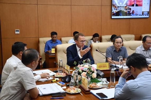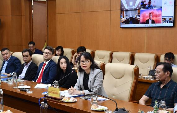 Mit seinen Grußworten betonte Herr Simon Kreye, stellvertretender Leiter der Deutschen Botschaft in Hanoi, die Bedeutung des reibungslosen Betriebs von Kreditinstituten und des Finanzsystems für die Wirtschaft. Die Einholung von Expertenmeinungen sei äußerst bedeutsam für die Prüfung des Gesetzesentwurfs wurde dabei betont.