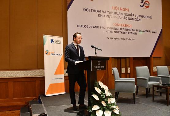 Florian Feyerabend, Leiter der Konrad-Adenauer-Stiftung Vietnam, teilte in seiner Ansprache zu der Veranstaltung mit, dass der derzeitige Arbeitsrahmen noch nicht einwandfrei ist. Bei diesen Veranstaltungen sollen die noch bestehenden Probleme und Defizite durch Dialog und Fortbildungen angegangen werden. Die Veranstaltung bietet für Rechtsexperten, politische Entscheidungsträger und Beamte eine Plattform, um Wissen auszutauschen, lebhafte Diskussionen zu führen, voneinander zu lernen und Meinungen, Vorschläge und mögliche Lösungen vorzubringen, mit dem Ziel, das Rechtssystem zu verbessern und die gesetzten Standards zu gewährleisten.
