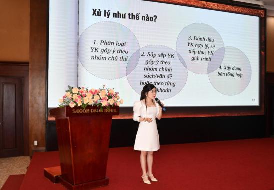 Am Vormittag standen die Dialoge im Vordergrund, bei denen Vertreter der Provinzen und der zentralen Verwaltungseinrichtungen über (1) die Positionen und Rollen der Rechtsabteilungen bei der Formulierung von Rechtsvorschriften, (2) die Identifizierung von Schwierigkeiten bei der Formulierung von Rechtsvorschriften auf zentraler und lokaler Ebene und (3) Lösungen zur Verbesserung der Positionen und Rollen der Rechtsabteilungen bei der Formulierung von Rechtsvorschriften diskutierten. Nachmittags fokussierte man sich auf die Schulung von Fähigkeiten. Der Schwerpunkt der Schulungen war das Kommentieren und Bewerten von Vorschlägen/ Entwürfen gemäß dem Gesetz der Verkündung von Rechtsdokumenten aus dem Jahr 2015 (geändert und ergänzt im Jahr 2020).