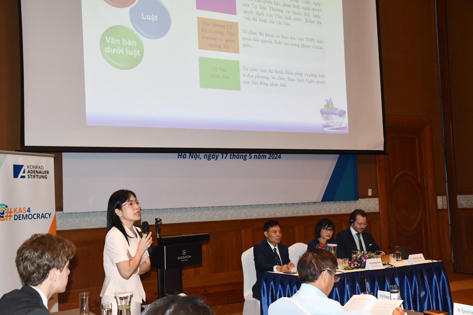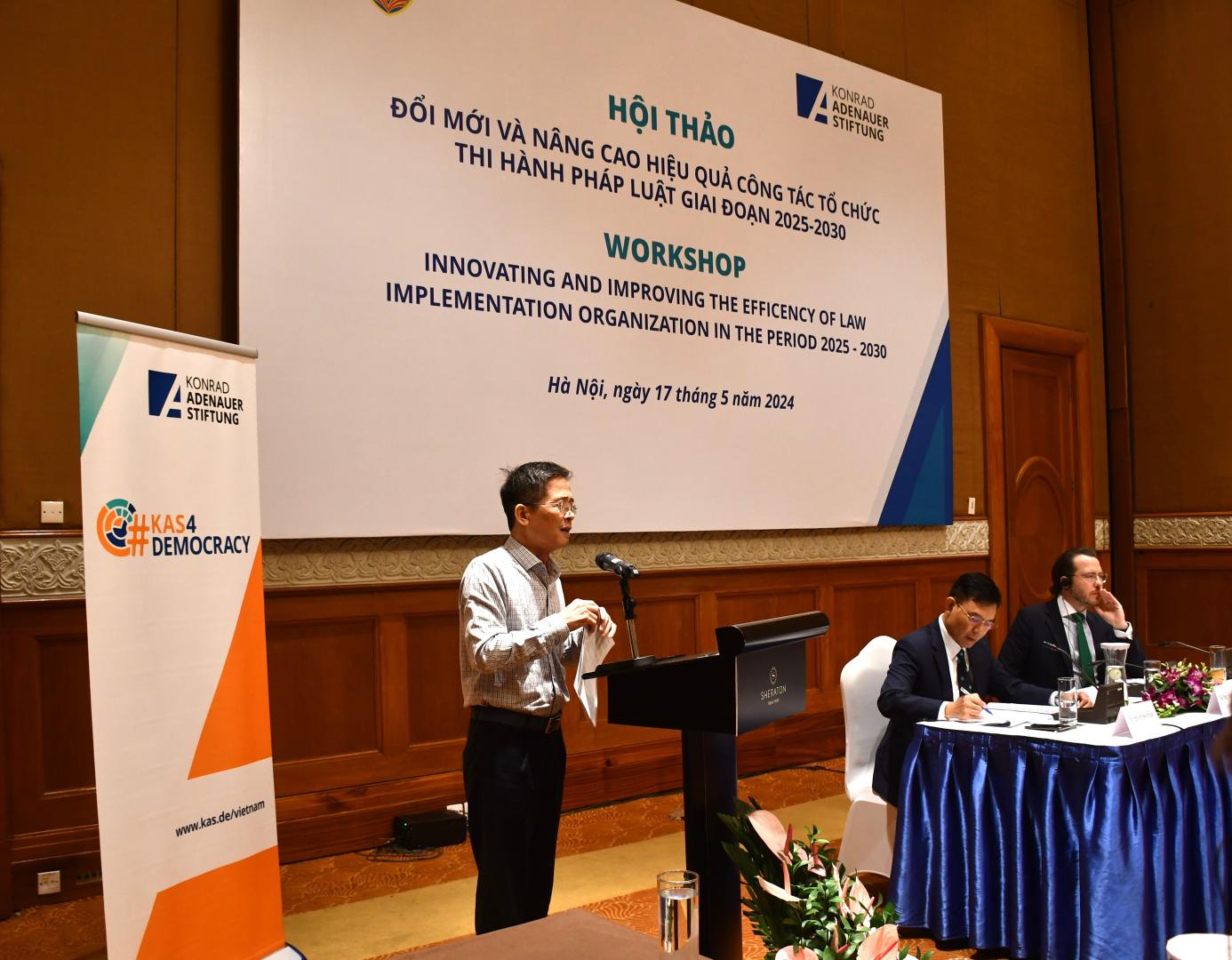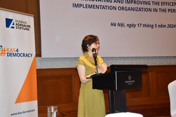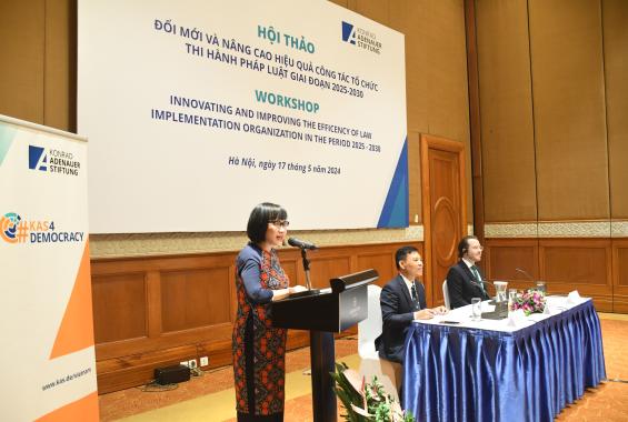 In seiner Rede in dem Workshop betonte die stellvertretende vietnamesische Justizministerin Dang Hoang Oanh die entscheidende Rolle des Aufbaus und der Organisation der Strafverfolgung. Diese Aufgaben sind für den Aufbau eines sozialen Rechtsstaates unerlässlich. Florian Feyerabend, Leiter der KAS Vietnam, betonte die Wechselbeziehung zwischen einem starken Rechtsstaat und einer effektiven Verwaltung. Transparenz und Überprüfbarkeit staatlichen Verwaltungshandelns sind Voraussetzungen für die Optimierung von Verwaltungsprozessen. Darüber hinaus betonte Feyerabend, dass selbst das beste Gesetz unwirksam sei, wenn es nicht korrekt umgesetzt werde, was zu erheblichen Auswirkungen auf das wirtschaftliche und soziale Leben führe. Mit den steigenden Anforderungen an die nationalen Regierungen steigen auch die Anforderungen an die Verwaltung. Die Aufgaben werden komplexer, und die Interdependenzen nehmen zu. Die Überwachung der Wirksamkeit von Gesetzen muss mit diesen Entwicklungen Schritt halten können oder im besten Fall einen Schritt voraus sein. Eine erfolgreiche Institutionalisierung der Wirkungsbeobachtung erfordert die Zusammenarbeit der zuständigen Behörden auf allen Verwaltungsebenen, ressortübergreifend und im sinnvollen Dialog.