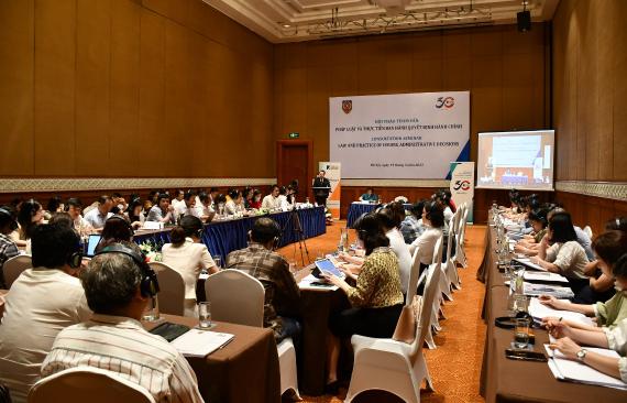 Das Seminar fand im Rahmen des seit 2008 bestehenden bilateralen Rechtsstaatsdialogs zwischen Deutschland und Vietnam statt. Ein renommierter deutscher Experte aus dem Gebiet des Verwaltungsrechts, Herr Klaus Hage, Vorsitzender Richter am Verwaltungsgericht Minden, sprach auf dem Seminar über die Praxis des Erlasses von Verwaltungsakten in Deutschland und erläuterte das deutsche Verwaltungsverfahrensgesetz (VwVfG) und die deutsche Verwaltungsgerichtsordnung (VwGO).