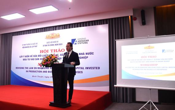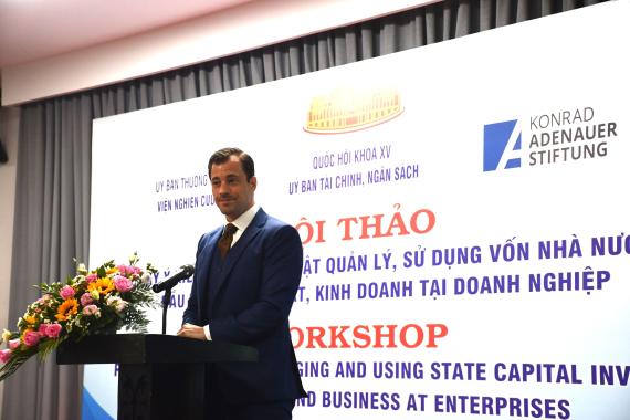 Der deutsche Rechtsanwalt Leif Schneider, stellvertretender Vorsitzender des EuroCham Rechtsausschusses, empfahl die Vorteile des vietnamesischen Staatseigentums an Wirtschaftsunternehmen zu maximieren und die Fallstricke abzumildern, indem es: