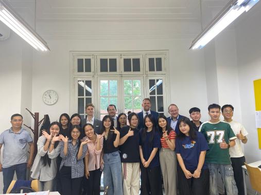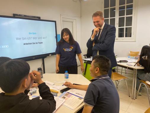 Während seines Aufenthalts in Hanoi hatte MdL Freymark ein erfolgreiches Treffen in der Deutschen Botschaft Hanoi, bei dem wirtschaftliche Zusammenarbeit, nachhaltige Entwicklung und politische Beziehungen diskutiert wurden. Darüber hinaus besuchte MdL Freymark auch das Goethe-Institut Hanoi, wo er mit vietnamesischen Lernenden interagierte und Programme zur Qualifizierung von Fachkräften und zur Vorintegration besprach. Diese Aktivitäten unterstrichen das anhaltende Engagement zur Verbesserung der Bildungsbeziehungen, zur Förderung der Fachkräftemigration und zur Förderung des kulturellen Verständnisses zwischen Deutschland und Vietnam.