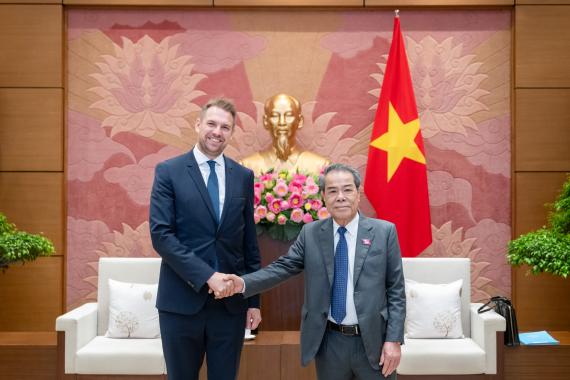 Der Besuch von MdL Freymark in Hanoi wurde auch durch einen Besuch im vietnamesischen Parlament, der Nationalversammlung, geprägt. Er traf sich mit der Leitung der Kommission für Volksanliegen, dem Ständigen Ausschuss der Nationalversammlung, um Erfahrungen im Umgang mit öffentlichen Petitionen in Deutschland und Vietnam auszutauschen. MdL Freymark, selbst Mitglied der Petitionskommission des Berliner Abgeordnetenhauses, wurde von Herrn Duong Thanh Binh, Mitglied des Zentralkomitees der KPV und Vorsitzender der Kommission für Volksanliegen, empfangen. Ihre Diskussion konzentrierte sich auf die Prozesse und Systeme zur Bearbeitung öffentlicher Petitionen, wobei Einblicke in die deutschen Erfahrungen geteilt und bewährte Praktiken und Erkenntnisse hervorgehoben wurden. Während des Treffens wurde die starke Zusammenarbeit zwischen Deutschland und Vietnam hervorgehoben, insbesondere durch gemeinsame Projekte zwischen der Konrad-Adenauer-Stiftung Vietnam und der Nationalversammlung in den letzten Jahrzehnten. Beide Parteien bekundeten ihr Engagement, diese Zusammenarbeit weiter zu stärken, um die Systeme für öffentliche Petitionen zu verbessern und die politische Vertretung und Beteiligung in beiden Ländern zu fördern. In einem anschließenden Treffen traf sich MdL Freymark mit Herrn Hoang Anh Cong, Vizepräsident der vietnamesisch-deutschen parlamentarischen Freundschaftsgruppe. Herr Cong teilte Pläne für einen bevorstehenden Besuch in Deutschland mit und betonte die Bedeutung dieser Reise zur Förderung engerer Beziehungen zwischen den beiden Nationen. MdL Freymark erklärte seine Bereitschaft, den Besuch in Berlin zu unterstützen und hob die gegenseitigen Vorteile solcher Austausche hervor. Das Treffen endete mit der Bekräftigung beider Parteien, die Partnerschaft zwischen Vietnam und Deutschland durch fortgesetzten Dialog und Zusammenarbeit weiter zu vertiefen.