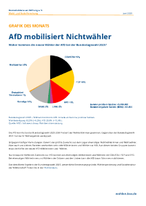 Ein Bild sagt mehr als tausend Worte. Deshalb stellen wir jeden Monat einen spannenden Befund aus unseren Studien der empirischen Wahl- und Sozialforschung in unserer "Grafik des Monats" vor. Ein Blick auf die Grafik genügt in der Regel, um das Thema und das Ergebnis zu erfassen. Ein kurzer einordnender Text gibt dennoch begleitenden Kontext und verweist für Interessierte auf die vollständige Studie.