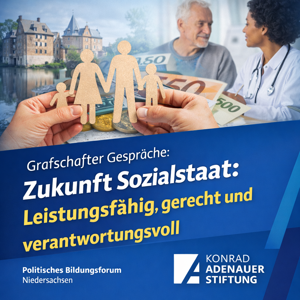 Die Grafschafter Gespräche der Konrad-Adenauer-Stiftung greifen diese zentrale Zukunftsfrage auf. Die Veranstaltung beleuchtet Reformoptionen aus ordnungs- und gesellschaftspolitischer Perspektive und diskutiert, wie Solidarität, Eigenverantwortung und Leistungsfähigkeit in ein ausgewogenes Verhältnis gebracht werden können. Ziel ist es, Orientierung zu geben und Raum für eine sachliche Debatte über die Zukunft des Sozialstaates zu schaffen.