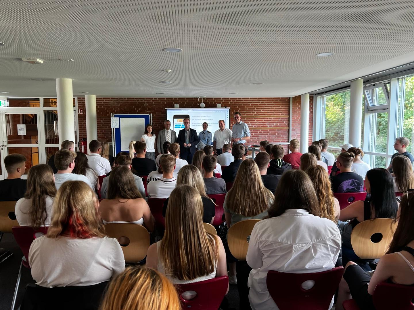 Angeleitet und moderiert wurde die Veranstaltung von Manuel Ley, dem Leiter des Hermann-Ehlers-Bildungsforums Weser-Ems der Konrad-Adenauer-Stiftung. Nach einem kurzen Input seinerseits gaben die externen Referentinnen eine persönliche Stellungnahme. Eingeladen waren dazu: Bundeswehrhauptmann Meike Bauersfeld (Jugendoffizierin Oldenburg), Jan Hoffmann (Geschäftsführer Deutsches Rotes Kreis, Kreisverband Cloppenburg e.V.) und Lukas Reinken (Mitglied des Nds. Landtages). Anschließend diskutierten sie in Form eines Worldcafés angeregt mit den Schülerinnen und Schülern aus den Berufsfeldern Agrarwirtschaft, Ernährung, Pflege, Gesundheit und Wirtschaft. Dabei wurde in den einzelnen Runden des Wordcafés viel diskutiert und viele Ideen und Denkanstöße von den Jugendlichen eingesammelt sowie ausgewertet.