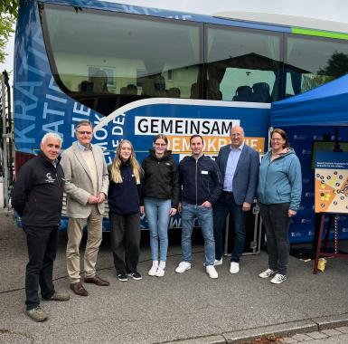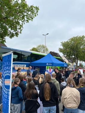 Im Laufe des Tages besuchten uns rund 350 Schülerinnen und Schüler gemeinsam mit ihren Lehrkräften am Bus. Besonders gefreut hat uns der Besuch einer Klasse mit ausschließlich ukrainischen Jugendlichen, die sich mit großem Interesse und Engagement an den Gesprächen über unsere Demokratie beteiligten.