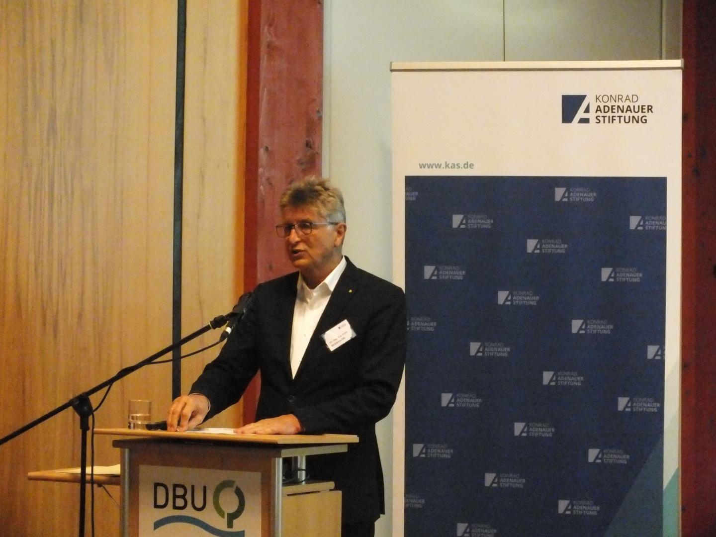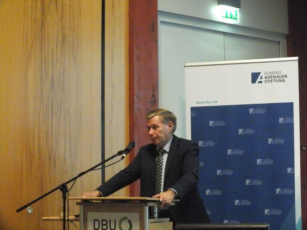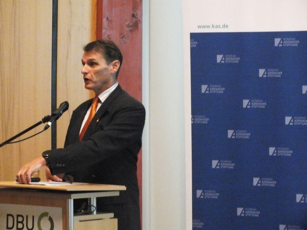 "Helmut Kohl - Der Ehrenbürger Europas“ war das Thema der Abendveranstaltung in der Deutschen Bundesstiftung Umwelt in Osnabrück. Nach der Begrüßung durch Herrn Dr. Gehrold folgte ein kurzer Input durch Dr. Brickwedde in der Rolle als Zeitzeuge und Vertrauter von Kohls Verbündeten Ernst Albrecht Ministerpräsident Niedersachsens A.D.