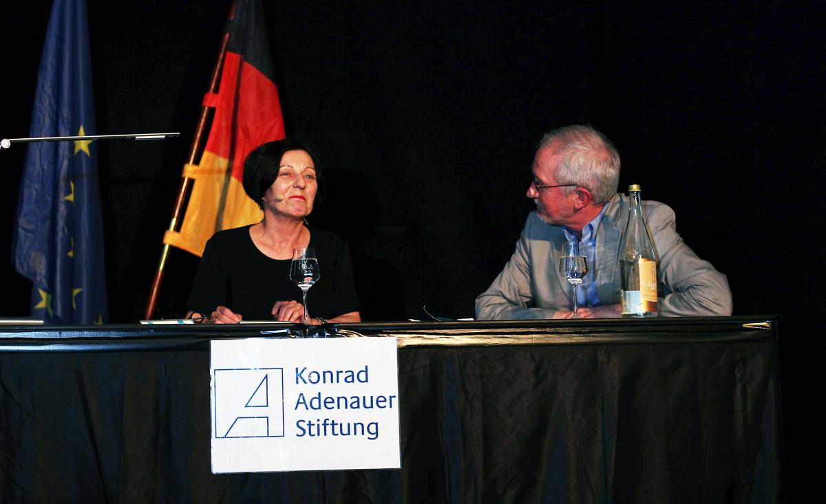 Eingeladen und hingeführt zu dem Lesungsabend wurde die Autorin von Hans-Gert Pöttering, dem Präsidenten des Europäischen Parlaments a.D. Ein faszinierender, vom Oldenburger Bildungsforum der Adenauer-Stiftung organisierter Event in der Stadt der Landesgartenschau 2018, vor allem für die zahlreichen Schülerinnen und Schüler.