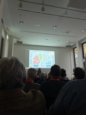 Vor der Teilnahme an der Parlamentssitzung auf der Besuchertribüne wurde uns die Sitzordnung im Plenarsaal und der Ausblick auf die Tagesordnung erklärt.