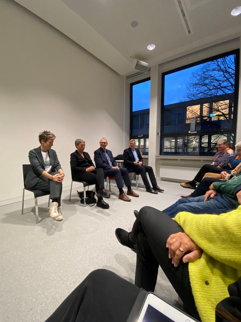 Danach hatten wir die Möglichkeit mit Abgeordneten ins Gespräch zu kommen und mit ihnen zu diskutieren. Sina Beckmann (Bündnis 90/Die Grünen), Landtagspräsidentin Hanna Naber (SPD), Björn Thümmler (CDU) und Ulf Thiele (CDU) standen uns hierfür zur Verfügung und beantworteten engagiert alle Fragen unserer Besuchergruppe.