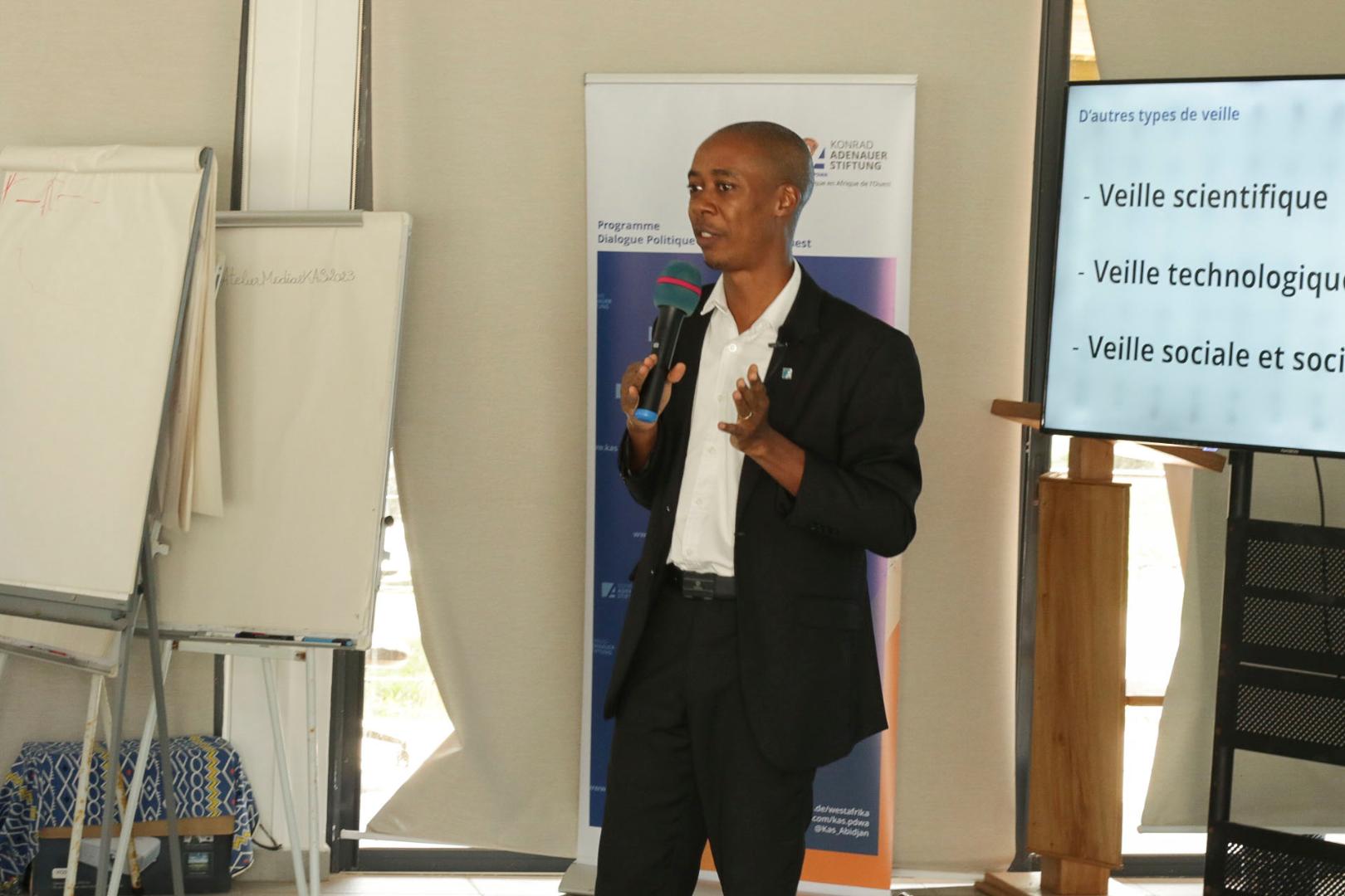 Il était question de sessions théoriques et pratiques conduites principalement par l'expert médias et marketing politique Gérard Guèdègbé, mais aussi par le politologue Dr. César Moquet Flan, et le chargé de programme Economie, Médias et Communication, Victor-Emmanuel Ekwa-Bebe III.