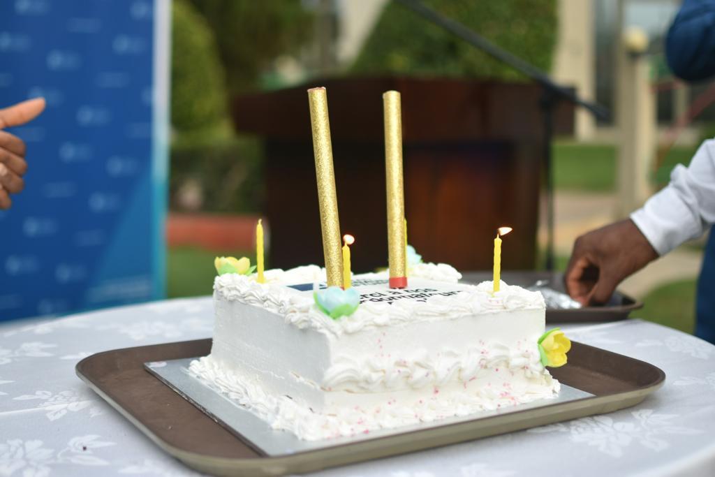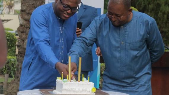 La cérémonie a ensuite été l'objet de la reconnaissance rendue par la KAS à Maurice Gblodzro et Mounirou Tchakondoh, coordonnateurs EWoH 2 et correspondants PDWA, respectivement au Togo et au Bénin. EWoH 2 est le programme "Un seul monde sans faim", qui a promu des années durant les droits au foncier et le développement des femmes rurales au Bénin, au Burkina Faso et au Togo. Le programme a pris fin le 31 décembre 2022, et c'était l'occasion, autour d'un gâteau d'au revoir, de féliciter les deux protagonistes présents, et à travers eux, Dr. Dramani Ouédraogo, coordonnateur EWoH 2 au Burkina Faso.